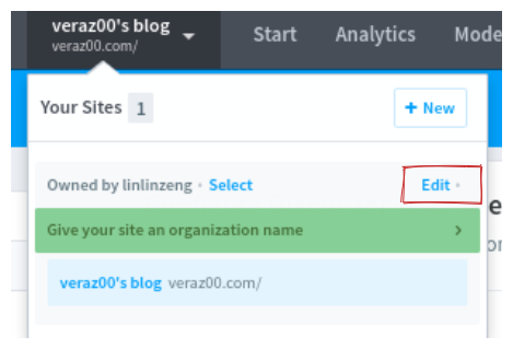 Note: what can u do when accidentally closing the site page? you can access the settings by clicking on Your Sites > Edit in the upper-left side.**