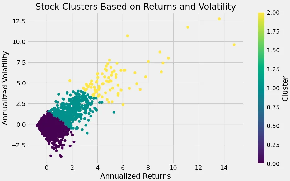 - Clustering: Grouping stocks based on annual returns and volatility to identify patterns and make predictions.